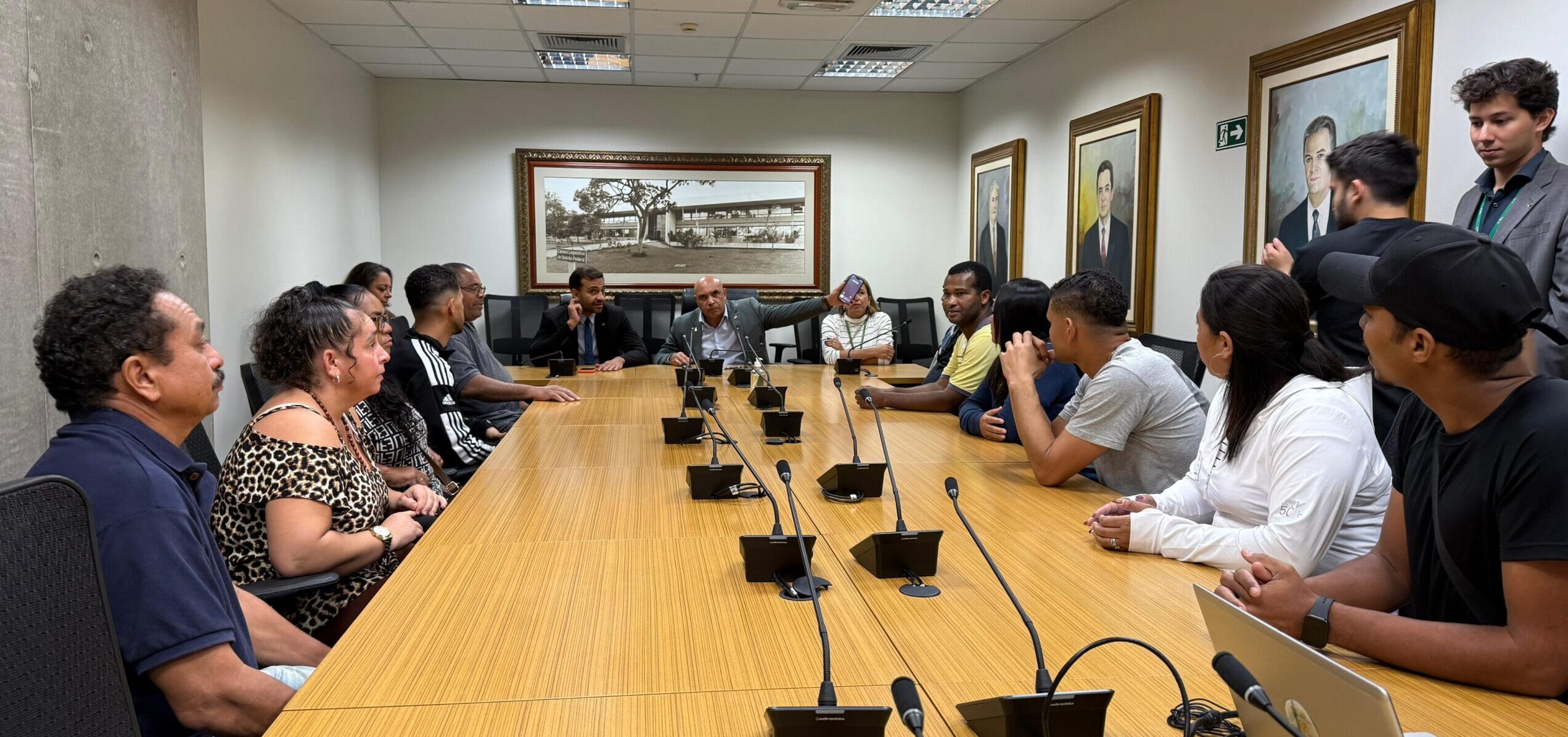 Representantes dos ambulantes da Rodoviária do Plano Piloto se reuniram na tarde desta quarta-feira (18) com o presidente da Câmara Legislativa do Distrito Federal, deputado Wellington Luiz (MDB), e com o deputado distrital Fábio Felix (PSOL), presidente da Comissão de Defesa dos Direitos Humanos, Cidadania e Legislação Participativa. O objetivo do encontro foi debater os impactos da concessão do terminal à iniciativa privada e buscar soluções urgentes para garantir o direito ao trabalho dos trabalhadores informais.